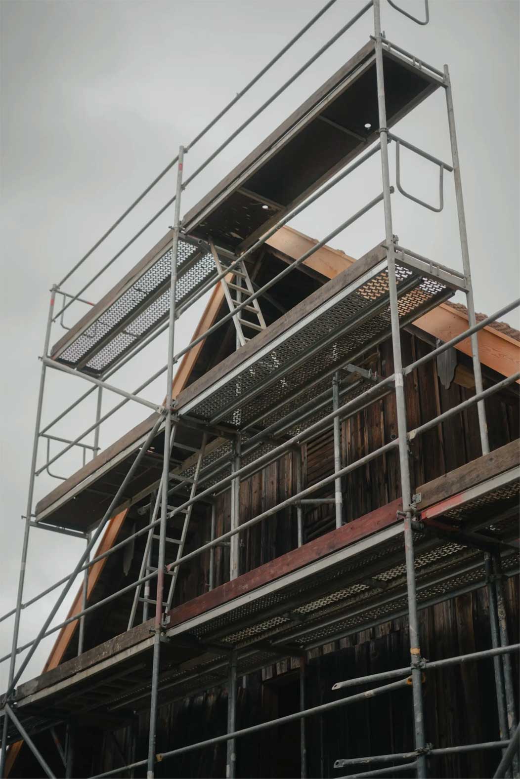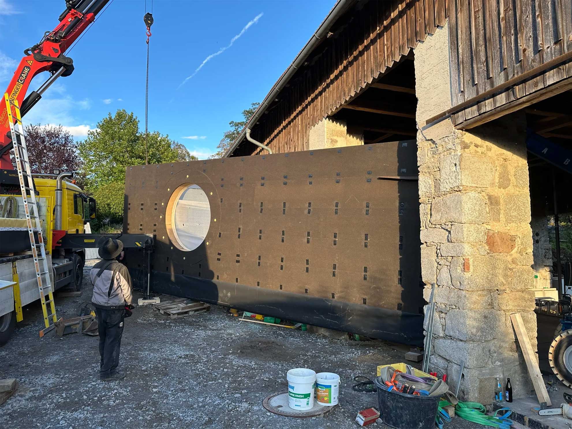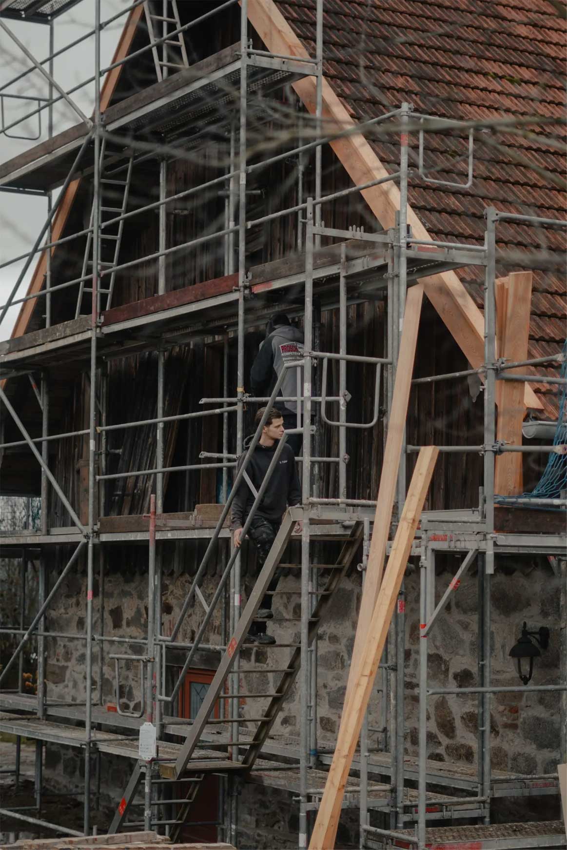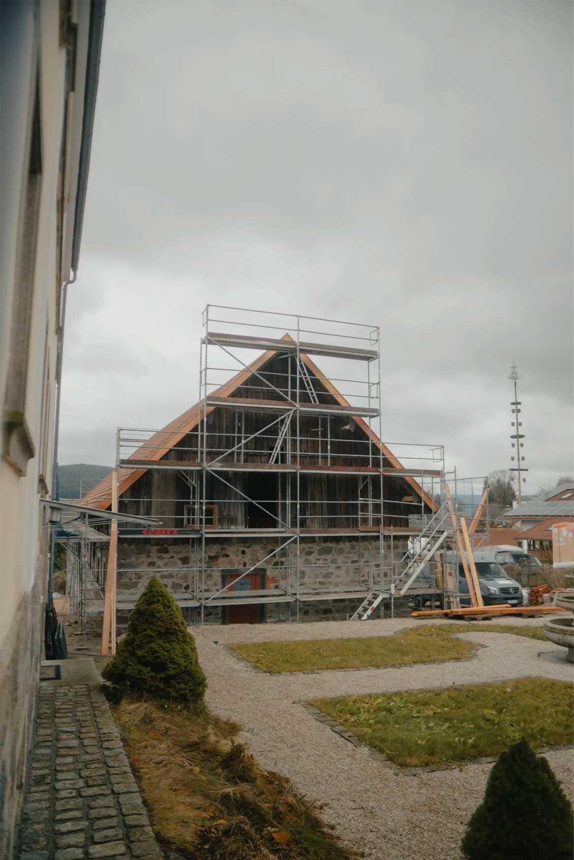- Notabsicherung des ehemaligen Kuhstalls: Schutz der Substanz für die kommenden Bauphasen.
